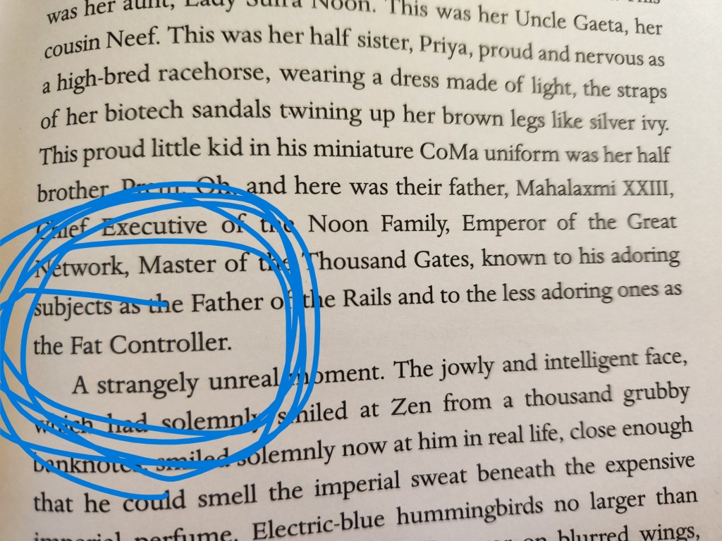 At the heart of the Great Network lay Grand Central. All the main lines of the galaxy met there, which meant that whichever corporate family controlled Grand Central controlled the whole Network…Portraits of the Noon Emperors and Empresses beamed down from holoscreens, and the smiling golden sun of Noon flapped on bright banners above a garden city, which covered half the planet, the buildings spread wide apart, diamondglass towers and golden station canopies rising from a sea of trees.